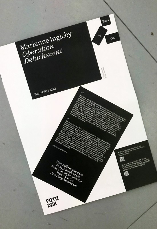 Pass It On was oorspronkelijk een tentoonstelling over archieven en found footage. Door covid kon de tentoonstelling helaas niet lang open zijn en Fotodok zocht daarom een mogelijkheid om de tentoonstelling te vatten in een publicatie die makkelijk te versturen is. Het feit dat het omslag tegelijkertijd een verzenddoos is, onderstreept dit idee. De fotografen in de publicatie zijn: Lebohang Kganye, Pablo Lerma, Marianne Ingleby, Yara Jimmink en Inge Meijer.