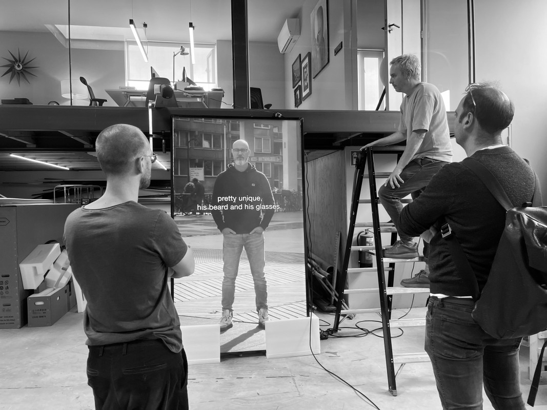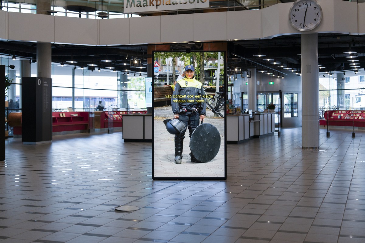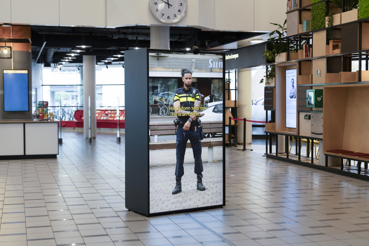 Begin 2024 ben ik gevraagd om de een fysieke versie van het kunstwerk mede te ontwikkelen met als eerste tentoonstellingslocatie Bibliotheek Rotterdam. Het resultaat is een video-installatie met drie objecten waar aan weerszijden de betrokken politieagenten life-size te zien zijn. Terwijl je langs de schermen loopt hoor je de verschillende voorbijgangers de agenten beschrijven. Het is bijna alsof iedereen werkelijk aanwezig is. Na de expositie in Bibliotheek Rotterdam gaat de installatie naar verschillende andere locaties in Nederland. De drie objecten versterken elkaar, maar zijn ook afzonderlijk op drie verschillende plekken in Nederland tentoon te stellen.